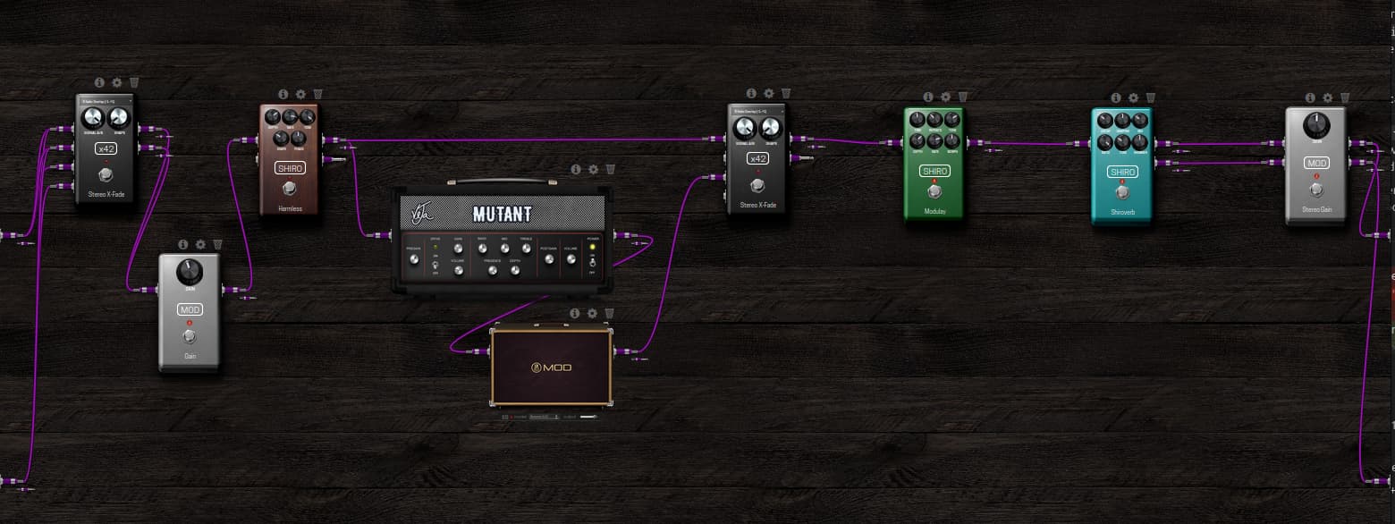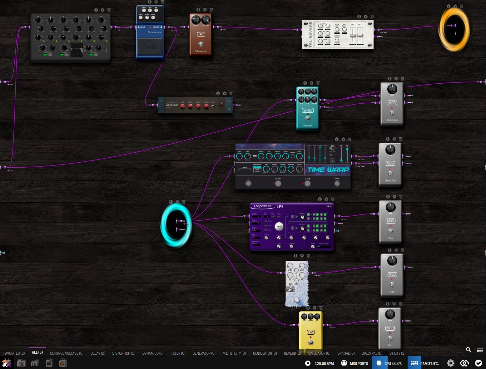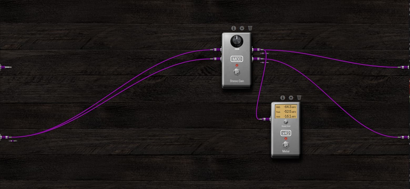 Next I tried to load up the default pedalboard, so just plain connecting the input to the output with a stereo gain. No noise! So the issue has to be the plugins which I’m using.