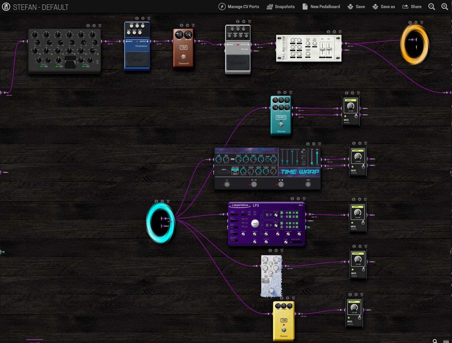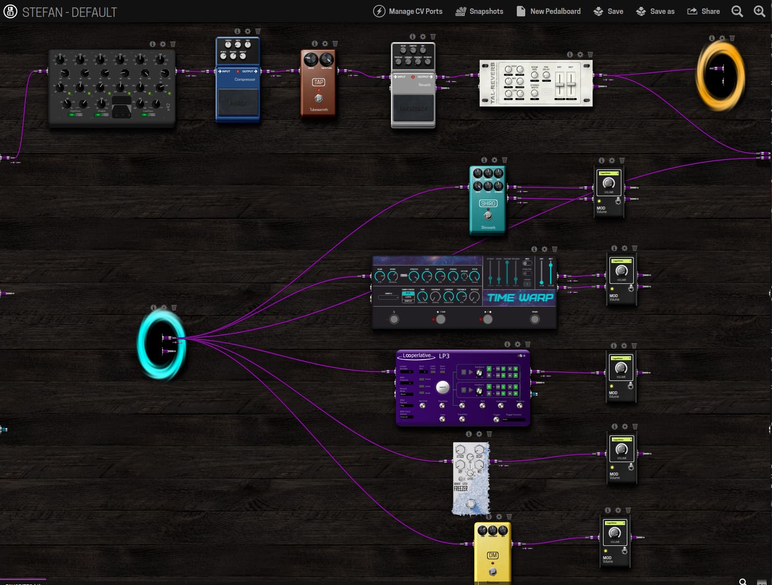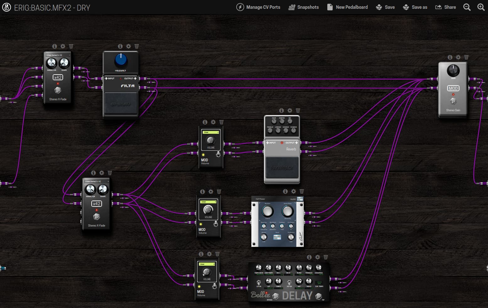 Next I tried to load up the default pedalboard, so just plain connecting the input to the output with a stereo gain. No noise! So the issue has to be the plugins which I’m using.