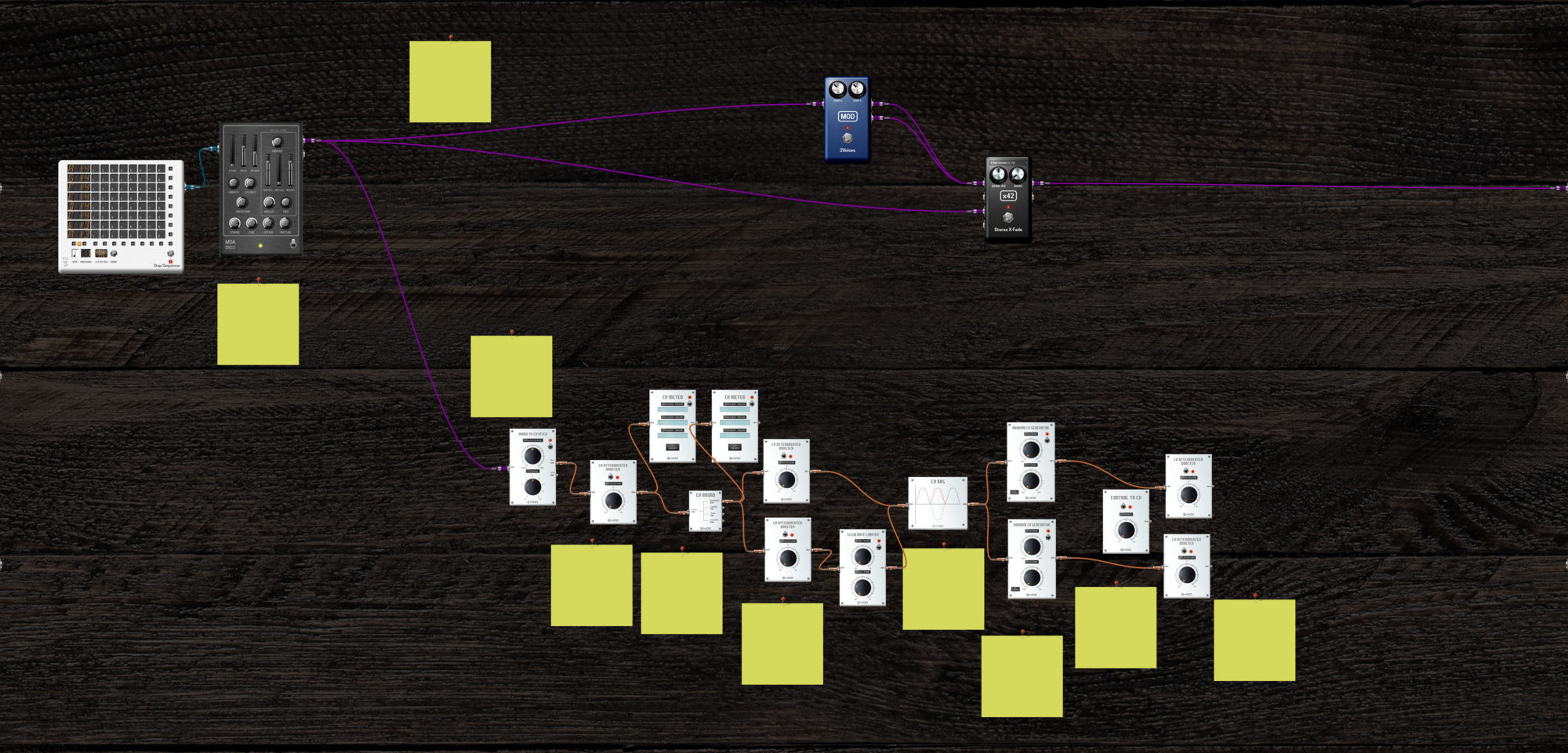 …just getting through a bunch of shows with a pedalboard that uses this idea. once things settle a bit, i’ll put together a clear board to demonstrate!