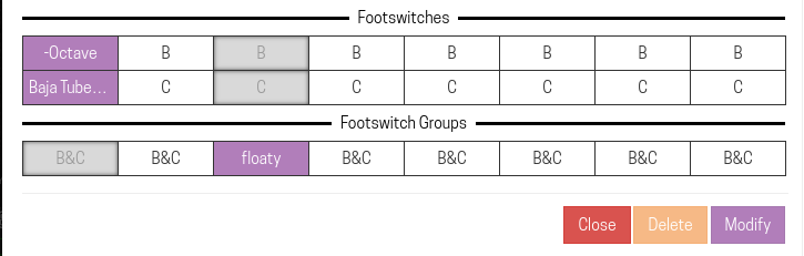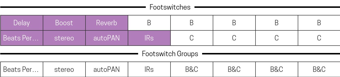 On the binding page I think the last line could be a bit confusing, maybe it could be written used separately or just a X if the B or C footswitch is mapped elsewhere ?
