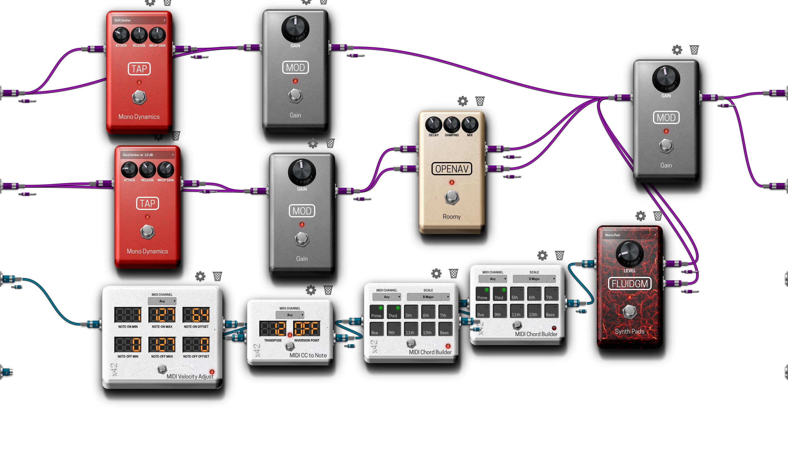 I found that when the unit is not plugged into my computer it doesn’t seem to be clipping as much. But when I add reverb plugin after the String Pad it starts to clip a lot again. I guess that connecting to the GUI uses some of the CPU. This pedalboard, as is, is right at the cusp of glitching out when not connected to the computer.